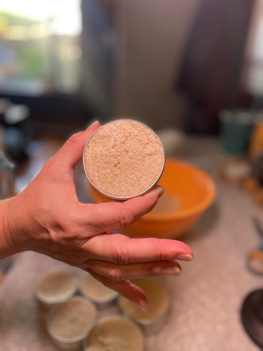 All of the above ingredients PLUS I add Organic Shea Butter & whip it all into a lovely cookie-dough-like texture that DEEPLY HYDRATES your skin like you've never felt before!