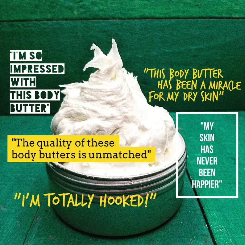 DEEPLY MOISTURIZING BUTTERS WITH A VELVETY SMOOTH TEXTURE THAT MELT INTO YOUR SKIN LIKE A DREAM! (Without any lingering greasy/oily feeling like most butters)